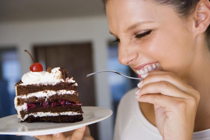 - Продукты, содержащие в своем составе сахар: торты, пирожные, мед, варенье и другие.